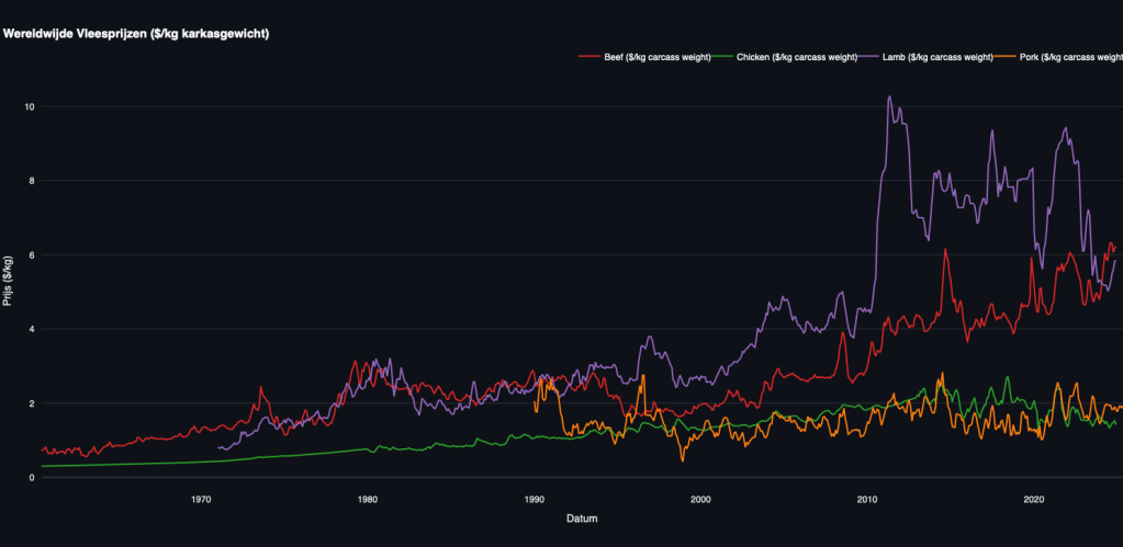 Yet the story is neither local nor sudden. Beef is one of the most globalized food commodities in the world. Roughly half a million cattle are slaughtered in the Netherlands each year, a tiny figure compared to the more than 30 million slaughtered annually in the United States or nearly 40 million in Brazil. The domestic debate about Dutch supermarkets misses the point. The real drivers of beef price inflation lie in decades-long structural changes that affect global cattle herds, international trade flows, and consumer eating habits. To understand why beef mince has become “suddenly” expensive, one must look far beyond the chilled cabinets of European retailers and into the mechanics of global supply and demand.